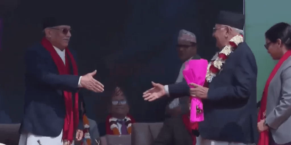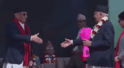 काठमाडौं । पूर्वप्रधानमन्त्री एवं एमालेका अध्यक्ष केपी शर्मा ओली आज शुक्रबार भरतपुर भ्रमण वर्ष उद्घाटन समारोहमा सहभागी हुन अन्य नेताहरुभन्दा ढिलो चितवनको भरतपुर पुगे । ओली भरतपुर पुग्दा कार्यक्रम सुरु भइसकेका थियो । नारायणी नदी किनारमा आयोजना गरिएको कार्यक्रममा ओली सरासर मञ्चमा गए । ओलीले मञ्चमा रहेका माओवादी केन्द्रका अध्यक्ष तथा प्रधानमन्त्री पुष्पकमल दाहाल प्रचण्डसँग…