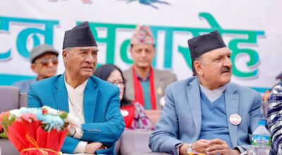 काठमाडौं । पूर्व प्रधानमन्त्री एवं कांग्रेस सभापति शेबहादुर देउवाले राष्ट्र संकटपूर्ण अवस्थामा रहेको बताएका छन् । आज शनिबार कांग्रेसको बाग्मती प्रदेश सम्मेलनलाई सम्बोधन गर्दै सभापति देउवाले यस्तो बताएका हुन । उनले संकटपूर्ण अवस्थामा सबै एकतावद्ध हुनुपर्ने बताएका हन्। उनले नेपाललाई समावेशी, समानुपातिक व्यवस्थामा पुर्याउन महत्त्वपूर्ण भूमिका खेलेको कांग्रेसले यो संकटको बेला नेतृत्वदायी भूमिका खेल्नुपर्ने पनि…