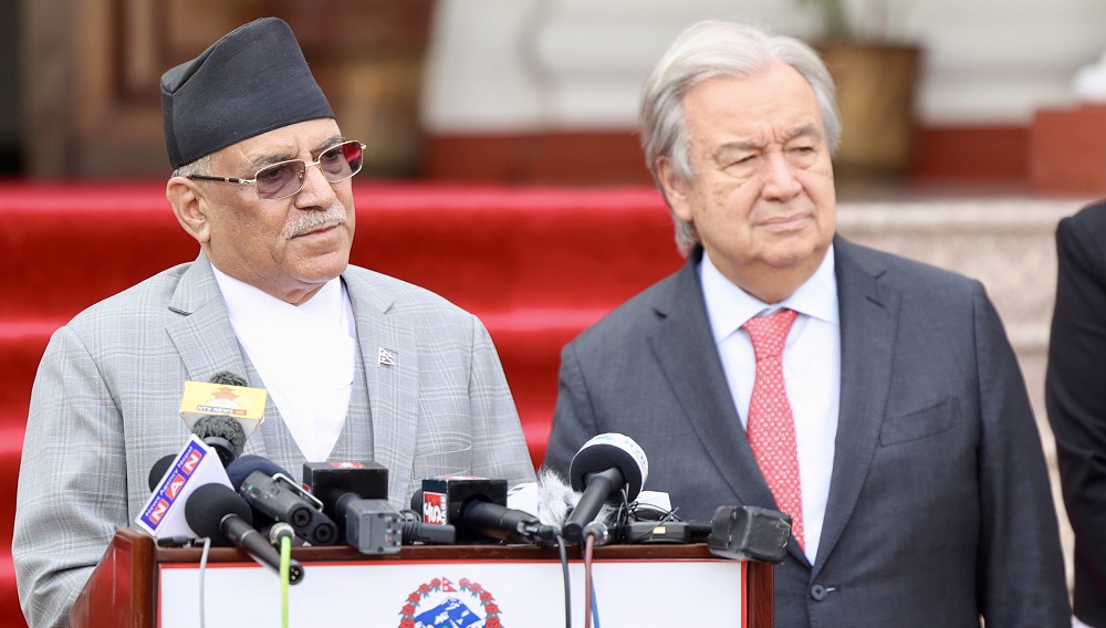 काठमाडौं । संयुक्त राष्ट्रसंघका महासचिव एन्टोनियो गुटरेसले हमासको आक्रमणपछि इजरायलमा हराइरहेका नेपालका विपिन जोशी सकुशल फिर्ताको कामना गरेका छन् । उनले साे कामना गर्दै सबै बन्धकहरू विनासर्त रिहाई हुनुपर्ने बताएका छन् । प्रधानमन्त्री पुष्पकमल दाहाल प्रचण्डसँग आइतबार भएको भेटपछि आयोजित पत्रकार सम्मेलनमा गुटरेसले हमासको आक्रमणमा मृत्यु भएका नेपालीहरुप्रति श्रद्धाञ्जली व्यक्त गरे । महासचिव गुटेरेसले हमासले…