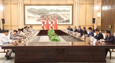 काठमाडौँ । प्रधानमन्त्री पुष्पकमल दाहाल ‘प्रचण्ड’ र चीनका राष्ट्रपति सी चीनफिङबीच ऐतिहासिक भेटवार्ता सम्पन्न भएको छ । चीनको साताव्यापी भ्रमणका लागि शनिबार हाङ्चाउ आइपुगेका प्रधानमन्त्री दाहालले चीनियाँ राष्ट्रपति सीसँग द्विपक्षीय हितका विविध विषयमा खुला र स्पष्टरूपमा छलफल गरेको प्रधानमन्त्रीको सचिवालयले जनाएको छ । “वार्तामा दुवै नेताबीच क्षेत्रीय स्थिरता, शान्ति र समृद्धिका लागि सबै क्षेत्रीय शक्तिबीच…