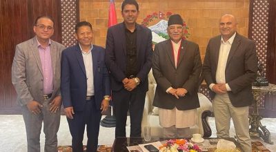 काठमाडौँ । सभामुख देवराज घिमिरेले नेताहरूसँग भेटवार्ता गरेका छन्। शनिबार सिंहदरवारस्थित सभामुखको कार्यालयमा प्रधानमन्त्री पुष्पकमल दाहाल ‘प्रचण्ड’, नेपाली काँग्रेसका सभापति शेरबहादुर देउवा र नेकपा एमालेका अध्यक्ष केपी शर्मा ओलीबीच भेटवार्ता भएको हो । प्रतिनिधि सभाको बैठकलाई कसरी प्रभावकारी बनाउने भन्ने विषयमा छलफल गर्ने एजेन्डा रहेको सभामुखको सचिवालयले जनाएको छ।