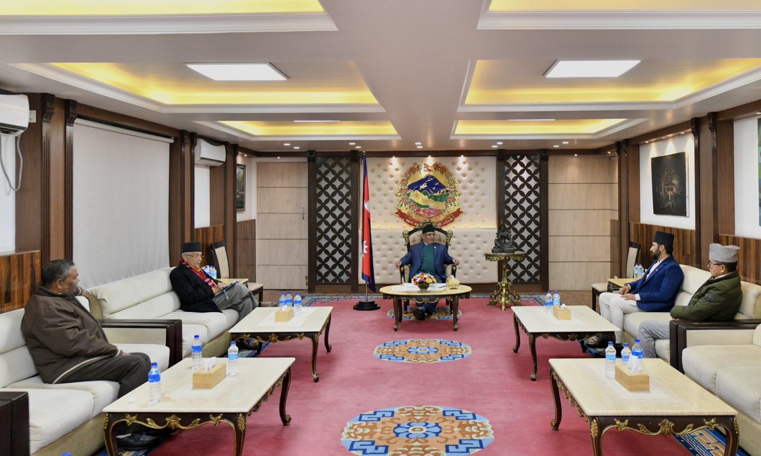 काठमाडौं । उच्चस्तरीय राजनीतिक संयन्त्रको बैठक प्रधानमन्त्री निवास बालुवाटारमा जारी छ । संयन्त्रको बैठकले मन्त्रालय भागबण्डाको टुंगो लगाउने बताइएको छ । संयन्त्रको संयोजक एमाले अध्यक्ष केपी शर्मा ओली हुन् । बैठकमा प्रधानमन्त्री एवं नेकपा माओवादी केन्द्रका अध्यक्ष पुष्पकमल दाहाल, एमाले अध्यक्ष ओली, राष्ट्रिय स्वतन्त्र पार्टीका अध्यक्ष रवि लामिछाने, राप्रपा अध्यक्ष राजेन्द्र लिङ्देन र जसपा अध्यक्ष…