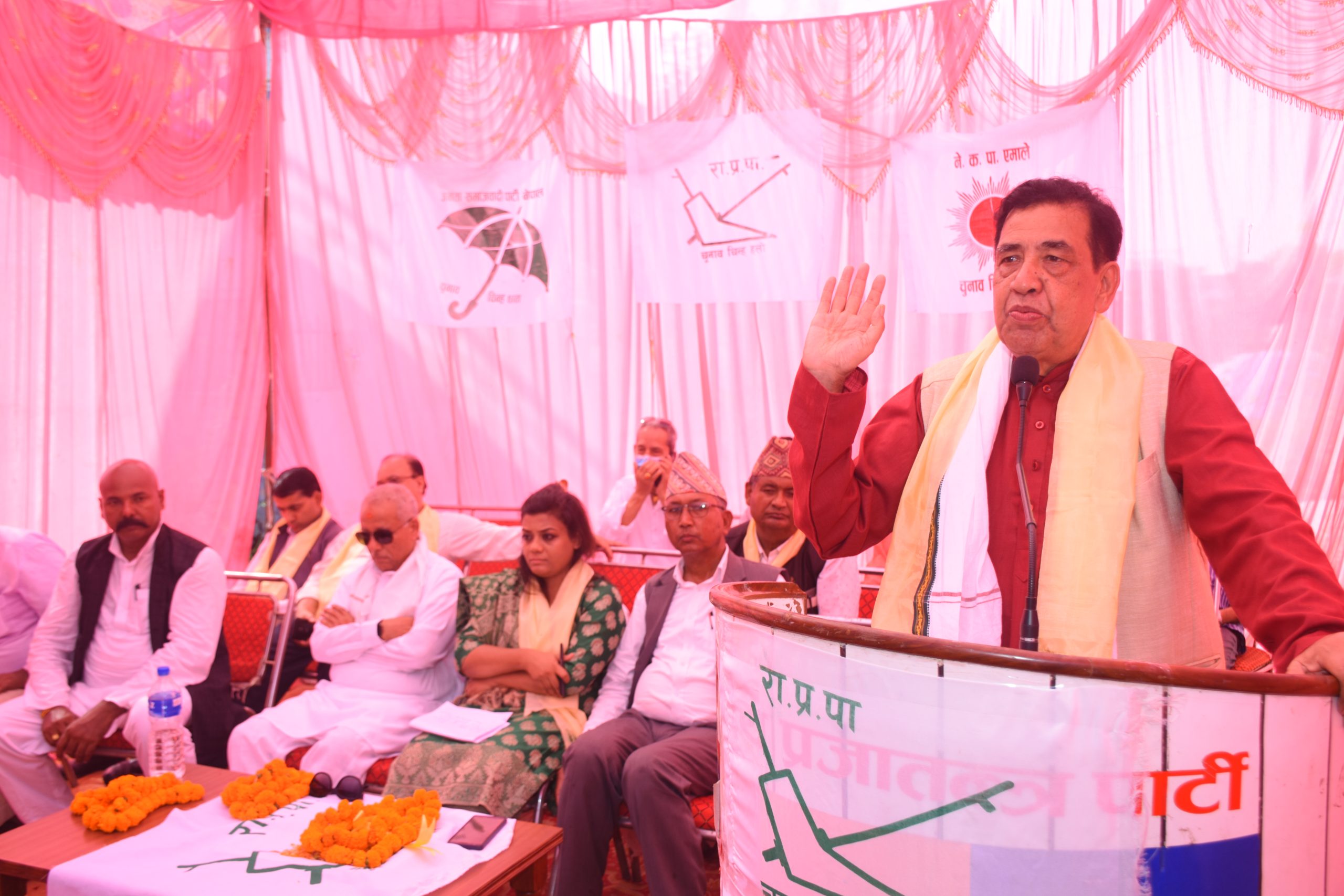 भैरहवा । पूर्व गृहमन्त्री निरञ्जन थापाले भोटका लागि तक्मा नबाँड्ने बताएका छन । रुपन्देहीको क्षेत्र नम्बर ३ भैरहवामा मंगलबार क्षेत्रीय संयुक्त चुनाव प्रचार प्रसार कार्यालयको उद्घाटन गर्दै उनले आफूहरू सरकारमा गएपछि अहिलेको सरकारले जस्तो तक्मा बाँडेर भोट नमाग्ने बताए । ‘भाेटका लागि तक्मा बाँडिएन बरू याेग्दानकाे मूल्यांकन गरी तक्मा बाँडेका थियाै,’ उनले भने, ‘भोटकै लागि तक्मा अहिले बाँडिएको छ…