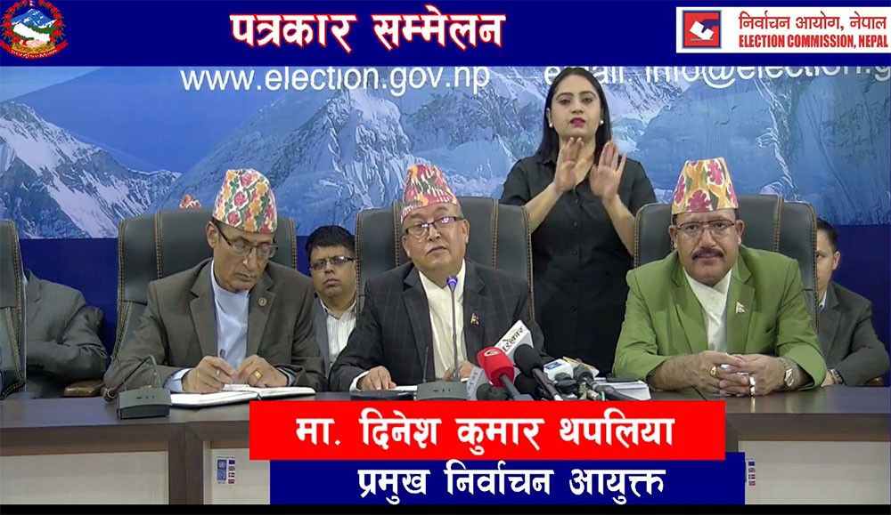 काठमाडौँ । निर्वाचन आयोगले समानुपातिक प्रतिनिधित्व सुनिश्चित हुने गरी उम्मेदवारी मनोनयनपत्र दर्ता गराउन राजनीतिक दलहरुलाई आग्रह गरेको छ । शनिबार निर्वाचन आयोगमा आयोजित पत्रकार सम्मेलनमा प्रमुख निर्वाचन आयुक्त दिनेशकुमार थपलियाले संविधान, कानुनको व्यवस्था र मर्मबमोजिम सबै वर्ग, क्षेत्र, लिंग, समुदायको समानुपातिक प्रतिनिधित्व सुनिश्चित हुने गरी उम्मेदवारी दिन आग्रह गरेका हुन् । प्रमुख आयुक्त थपलियाले भने,…