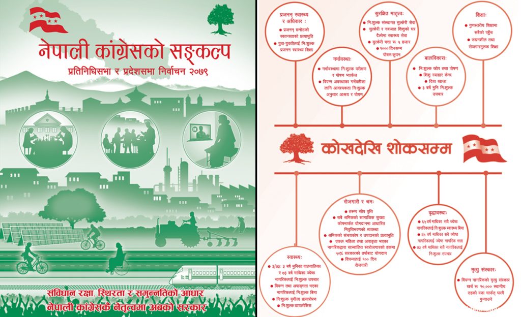काठमाडौं । नेपाली कांग्रेसले आगामी पाँच वर्षभित्र तीन वर्षमुनिका बालबालिका र ७३ वर्ष उमेर कटेका ज्येष्ठ नागरिकलाई निःशुल्क स्वास्थ्य उपचारको व्यवस्था गर्ने जनाएको छ । कांग्रेसले आगामी मङ्सिर ४ गते हुने प्रतिनिधिसभा तथा प्रदेशसभा निर्वाचनका लागि आज सार्वजनिक गरेको पार्टीको चुनावी सङ्कल्पपत्र (घोषणापत्र)मा पार्टीले विगतमा लिएको स्वास्थ्य नीतिका कारण नेपालको जनस्वास्थ्यमा उल्लेख्य उपलब्धी हासिल गरेको…