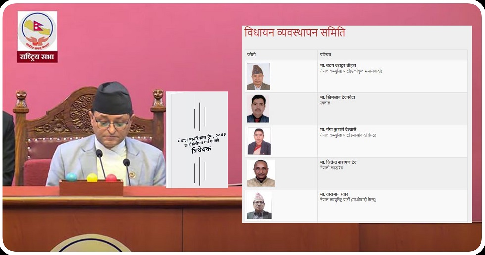 काठमाडौं । राष्ट्रिय सभाले नेपाल नागरिकता (पहिलो संशोधन) विधेयक २०७९ लाई पुनर्विचारका लागि विधायन व्यवस्थापन समिति पठाएको छ । आइतबार बसेको राष्ट्रिय सभा दोस्रो बैठकले उक्त विधेयकलाई पुनर्विचारका लागि विधायन व्यवस्थापन समितिमा पठाउने प्रस्तावलाई सर्वसम्मतीले स्वीकृत गरेको सभाका अध्यक्ष गणेश प्रसाद तिमिल्सिनाले जानकारी दिए । प्रमाणीकरणका लागि आएको नेपाल नागरिकता (पहिलो संशोधन) २०७९ विधेयकका केही…