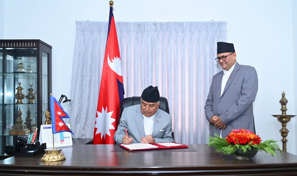 काठमाडौं । राष्ट्रपति रामचन्द्र पौडेलले शहीद दशरथ चन्द स्वास्थ्य विज्ञान विश्वविद्यालयको सम्बन्धमा व्यवस्था गर्न बनेकाे विधेयक प्रमाणीकरण गरेका छन् । संघीय संसद्को दुवै सदन (प्रतिनिधि सभा र राष्ट्रिय सभा) बाट पारित भएको उक्त विधेयक राष्ट्रपति पौडेलले बुधबार प्रमाणीकरण गरेका हुन् ।