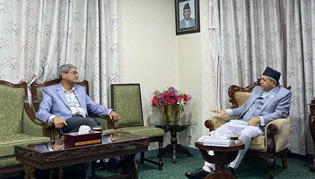 काठमाडौं । सभामुख देवराज घिमिरे र गृहमन्त्री रमेश लेखकबीच भेटवार्ता भएको छ । सिंहदरबारमा भएको भेटमा सहज रुपमा संसद सन्चालनको वातावरण बनाउने विषयमा छलफल भएको सभामुखको सचिवालयले जनाएको छ । नेकपा एमाले र नेकपा माओवादी केन्द्रसँग भएको २ बुँदे सहमति कार्यान्वयन, रास्वपाको माग लगायतका विषयमा छलफल भएको छ । भिजिट भिसा प्रकरणमा गृहमन्त्री रमेश लेखकको…
