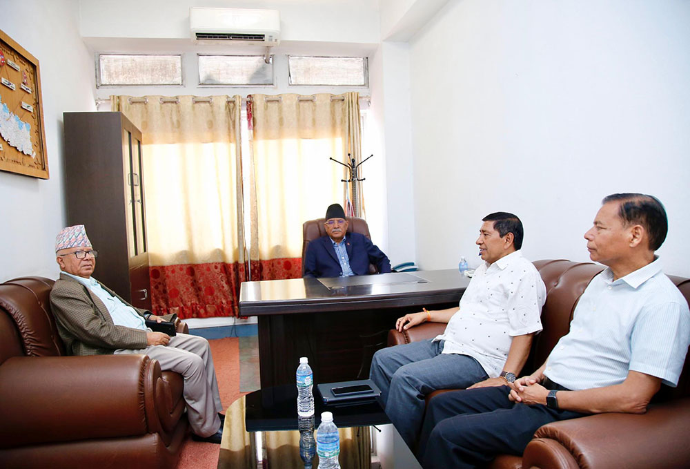 काठमाडौँ । नेकपा माओवादी केन्द्रका अध्यक्ष पुष्पकमल दाहाल प्रचण्ड र नेकपा एकीकृत समाजवादीका अध्यक्ष माधव नेपालबीच सिंहदरबारमा भेटवार्ता भएको छ । प्रचण्डले प्रधानमन्त्री केपी शर्मा ओली र कांग्रेस सभापति शेरबहादुर देउवासँग भेटगर्नु अघि प्रचण्डले नेपालसँग भेटवार्ता गरेका हुन् । प्रधानमन्त्री ओली र देउवाले संसदको अवरोध खुलाउने बारे छलफलका लागि बोलाएपछि प्रचण्डले नेपालसँग छलफल गरेका छन्…
