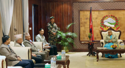 काठमाडौं । नेपाली कांग्रेसका संस्थापन पक्षीय केन्द्रीय सदस्यहरू अहिले नयाँ बानेश्वरमा छलफल गरिरहेका छन् । नेपाली काङ्ग्रेसभित्र देखिएको महाधिवेशनसम्बन्धी विवादबारे धारणा बनाउन भन्दै ६० बढी संस्थापन पक्षीय केन्द्रीय सदस्यहरू नयाँ बानेश्वरस्थित आनन्तभूमि पार्टी प्यालेसमा जम्मा भएका हुन् । बिहान १० बजेदेखि सुरु भएको बैठकमा केन्द्रीय सदस्यहरू सीता गुरुङ, कान्तिका सेजुवाल, नृप वड, उर्मिला नेपाल केसी,…