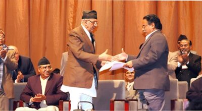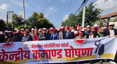 काठमाडौं । नेकपा एमालेले युवा दस्ता ‘युथ भोलेन्टियर फोर्स’ को केन्द्रीय कमाण्ड घोषणा गरेको छ । काठमाडौंको माइतीघरस्थित कार्की बान्क्वेटमा आयोजित कार्यक्रममा एमाले जनसंगठन समन्वय संयन्त्रका संयोजक भानुभक्त ढकालले ११ सदस्यीय केन्द्रीय कमाण्डर घोषणा गरेका गरकेा हुन् । केन्द्रीय कमाण्डरको प्रमुखमा पुष्पराज श्रेष्ठलाई तोकिएको छ । अध्यक्ष केपी ओलीले राज्यले मात्रै देशमा शान्ति सुरक्षा कायम…