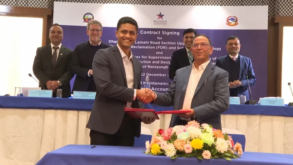 काठमाडौं । अमेरिकी विकास परियोजना मिलेनियम च्यालेन्ज कर्पोरेशन (एमसीसी) अन्तर्गतको एमसीए नेपालले धनखोला–लमही खण्ड स्तरोन्नतिका लागि ठेक्का सम्झौता गरेको छ । पूर्व–पश्चिम राजमार्गको दाङको धानखोलादेखि लमहीसम्मको ४० किलोमिटर सडक खण्ड मर्मतका लागि आज ठेक्का सम्झौता भएको हो । यो ठेक्का टेन्डर प्रक्रियाबाट शर्मा/कुमार श्रेष्ठ जेभीले भ्याटबाहेक २ करोड ८ लाख अमेरिकी डलर अर्थात् झन्डै ३…