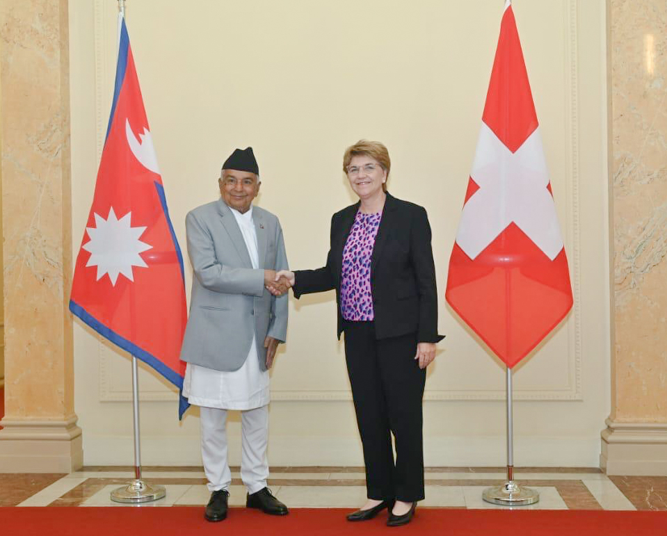 काठमाडौं । राष्ट्रपति रामचन्द्र पौडेल र स्वीट्जरल्याण्डका राष्ट्रपति भियोला एमहर्डबीच स्वीट्जरल्याण्डको बर्नमा भेटवार्ता भएको छ । स्वीट्जरल्याण्डको जेनेभामा भएको ११२ औँ अन्तर्राष्ट्रिय श्रम सम्मेलनको उच्चस्तरीय सत्रमा आयोजना गरिएको ‘सामाजिक न्यायका लागि विश्वव्यापी गठबन्धन’ को उद्घाटन सत्रमा मुख्य वक्ताका रुपमा सहभागी हुन जानुभएका राष्ट्रपति पौडेल र स्वीट्जरल्याण्डका राष्ट्रपति एमहर्डबीच भेटवार्ता भएको हो । त्यसअवसरमा राष्ट्रपति पौडेलले…