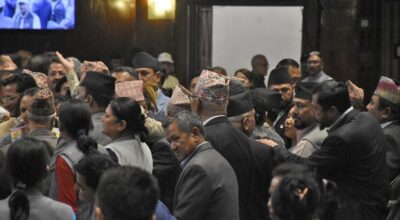 काठमाडौँ । प्रतिनिधि सभाको बैठक आज बिहान ११ बजे बस्दै छ । विहीबार भएको बैठक प्रमुख प्रतिपक्षी नेपाली कांग्रेसको अवरोधलाई सत्तापक्षले प्रतिरोध गरेपछि भिड्न्तको अवस्था सिर्जना भएको थियो । जसका कारण बैठक स्थगित भएको थियो । सभामुखले जबरजस्ती बैठक संचालन गर्न खोजेपछि विहीबारको बैठकमा तनावसमेत उत्पन्न भएको थियो । कांग्रेसले सहकारी ठगी प्रकरणमा संसदीय समितिको…