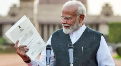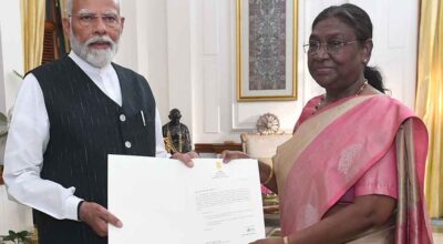 काठमाडौं । भारतीय प्रधानमन्त्री नरेन्द्र मोदीले शपथ लिएका छन् । नयाँ दिल्लीस्थित राष्ट्रपति भवनमा आयोजित विशेष कार्यक्रममा मोदीले तेस्रो पटक प्रधानमन्त्रीको शपथ लिएका हुन् । मोदीलाई राष्ट्रपति द्रौपदी मुर्मुले पद तथा गोपनियताको शपथ गराएकी हुन् । मोदीलाई राष्ट्रपति मुर्मुले शुक्रबार प्रधानमन्त्री पदमा नियुक्त गरेकी थिइन् । एनडीए गठबन्धनबाट सरकार बनाउने दाबि पेश गरेपछि राष्ट्रपति द्रौपदी…