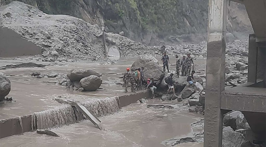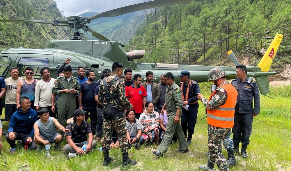 काठमाडौं । रसुवागढी जलविद्युत आयोजनाका २३ जना कामदारको उद्धार भएको छ । नेपाल–चीन सीमनाको लेन्डे खोला हुँदै भोटेकोशीमा आएको बाढीका कारण विद्युत् आयोजनामा कार्यरत कामदारहरू त्यहीँ फसेका थिए । उद्धारको लागी सेनाको एनए–०३८ एमआई र इकुरेल हेलिकप्टर परिचालन गरिएको छ । सेनाले हेलिकप्टरमार्फत २३ जनालाई सुरक्षित स्थानमा सारिएको जनसम्पर्क तथा सूचना निर्देशनालयले जनाएको छ ।…