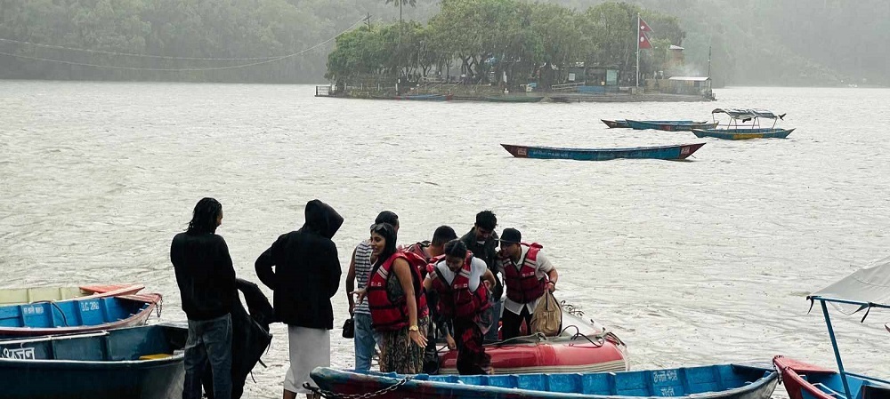 पाेखरा । सोमबार दिउँसो अचानक आएको हावाहुरीसहितको वर्षातमा परी फेवातालमा फसेका आठ जनाको उद्धार गरिएको छ । सशस्त्र प्रहरी बलको कालिका गण कास्कीबाट खटिएको टोलीले उनीहरुको उद्धार गरेको हो । दिउँसो ३ बजेतिर आएको हुरीले तालमा खसेका चितवन निवासी २२ वर्षीय रेशम थापा र पोखरा–६, लेकसाइडका २१ वर्षीय वर्षीय विजय सुनारलाई सकुशल उद्धार गरिएको गणपति…