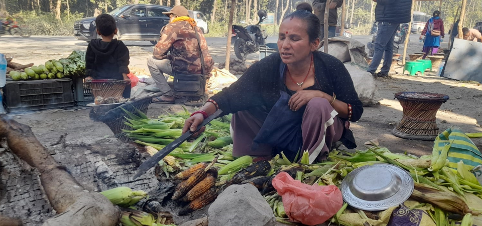 राजमार्ग छेउमा मकै पोलेरै जिविका