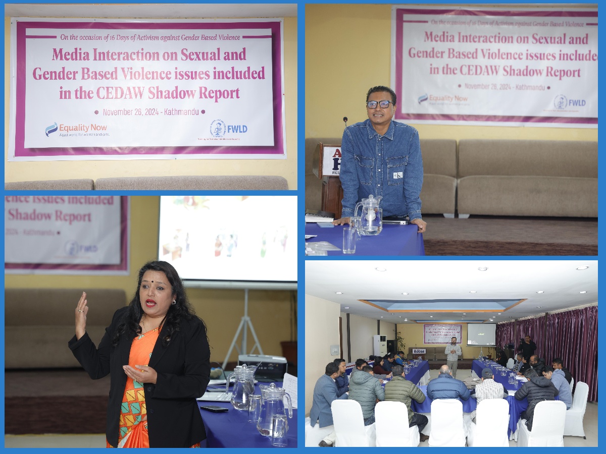 काठमाडौं । लैंगिक हिंसाका पीडितलाई सेवा सुविधा दिन साझा मापदण्डसहितको छाता ऐन आवश्यक रहेको बताइएको छ । महिला, कानुन र विकास मञ्च (एफडब्लुएलडी) ले मंगलबार आयोजना गरेको संयुक्त राष्ट्र संघीय महिलाविरुद्ध भेदभाव उन्मुलन गर्ने समिति (सिड) को छायाँ प्रतिवेदनमा समावेश यौनिक तथा लैगिक हिंसाका मुद्दामा सञ्चारकर्मीसँग गरिएको अन्तर्क्रियामा उक्त कुरा बताइएको हो । सिडको छायाँ…