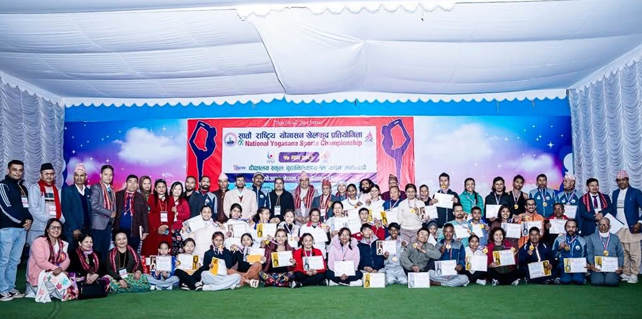 काठमाडौँ । कञ्चनपुरका रोशन विष्ट र काठमाडौँकी सोनम वाडमो तामाङ देशभरका २४६ जना योगासन खेलाडीलाई पछि पार्दै सातौँ राष्ट्रिय योगासन प्रतियोगिताअन्तर्गत क्रमशः ‘मिस्टर योगी’ र ‘मिस योगी’को उपाधि जित्न सफल भएका छन्। कपनस्थित दीक्षालय स्कुलको आयोजनामा सम्पन्न उक्त प्रतियोगितामा विभिन्न उमेर समूहका खेलाडीहरूले उत्कृष्ट प्रदर्शन गरेका छन्। रोशन विष्टले यसअघि पनि दुईवटा राष्ट्रिय प्रतियोगितामा ‘मिस्टर…