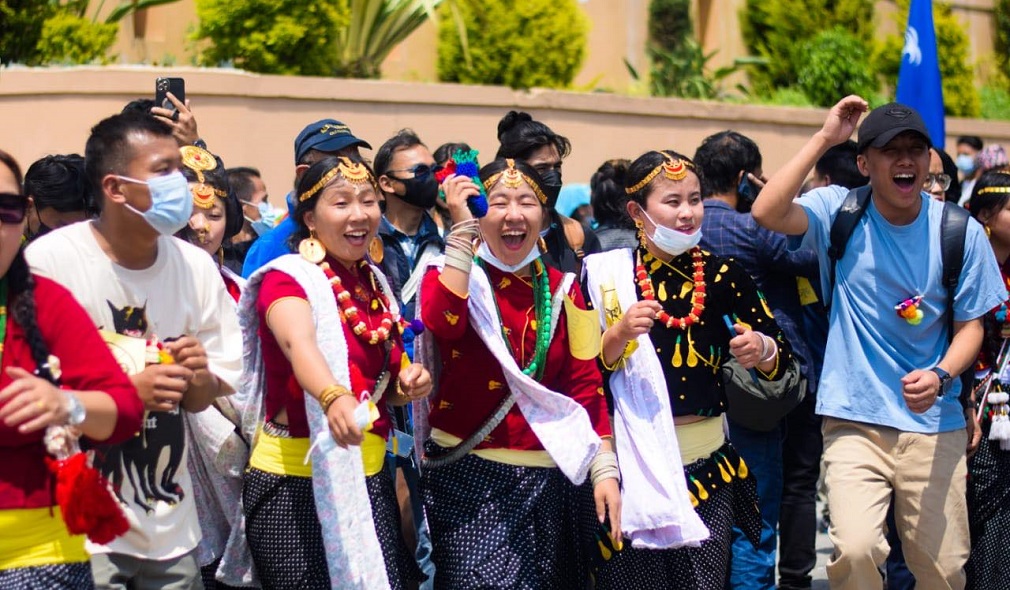 काठमाडौं, २२ वैशाख । काठमाडौंको बानेश्वरमा कोशी प्रदेश नामाकरणको विरोध गर्दै किराँत समुदायले उभौली पर्व मनाएका छन् । शुक्रबार देशभर समुदायले उभौली पर्व मनाइरहेका छन् । सोही क्रममा काठमाडौंको बानेश्वरमा भेला भएका किराँती समुदायले कोशी प्रदेश नामाकरणको विरोध गर्दै आफ्नो सांस्कृति पहिचान झल्कने बाजागाजा र नाचगानसहित उभौली पर्व मनाएका हुन् । आफ्नो सांस्कृतिक पोशाकसहित भेला…