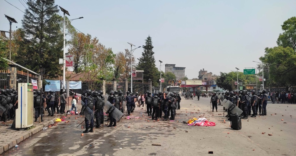 काठमाडौं । शान्तिवाटिकामा मिटरब्याज पीडित र प्रहरीबीच झडप भएको छ । तराईका विभिन्न स्थानबाट भेला भएर शान्तिवाटिकामा बस्दै आएका उनीहरू न्यायका लागि सिंहदरबारअगाडि, भद्रकालीमा गएर धर्नामा बस्न जाने योजनामा थिए । प्रहरीले आफूहरुमाथि बल प्रयोग गरी त्यहाँबाट जान नपाइने भन्दै बल प्रयोग गरेको हुँदा झडप भएको पीडितहरूले बताएका छन् । झडपलाई नियन्त्रणमा लिन प्रहरीले पानीको…