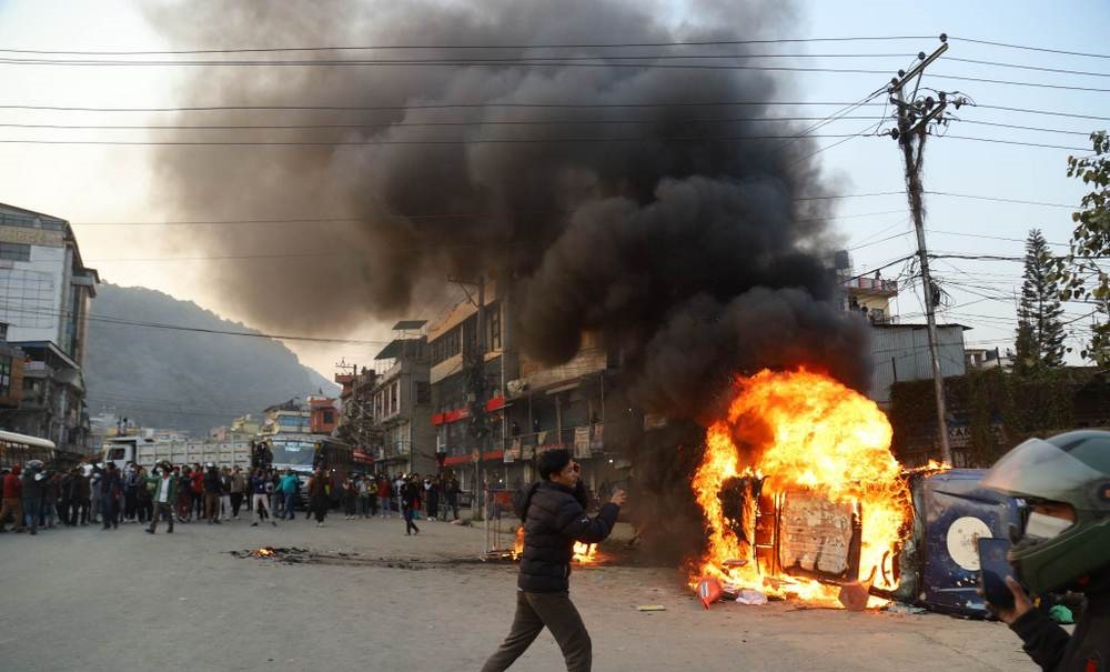 काठमाडौं । काठमाडौंको बालाजु क्षेत्रमा यातायात व्यवसायी तथा मजदुरहरुले ट्राफिक प्रहरीले लागू गरेको सवारी नियमविरुद्ध प्रदर्शन गरेका छन् । यातायात व्यवसायी र मजदुरहरुले सडकमा टायर बाल्दै प्रदर्शन गर्दा दुई पक्षीय झडपको समेत स्थिति उत्पन्न भएको हो । साे क्षेत्र अहिले तनावग्रस्त बनेको छ । आक्रोशित आन्दोलनकारीले प्रहरीको दुई वटा गाडी जलाएका छन् । प्रहरीले स्थितिलाई नियन्त्रणमा…