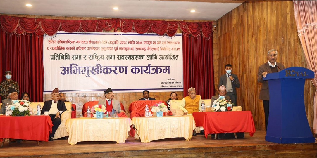 काठमाडौं । नेपाली कांग्रेसका सभापति शेरबहादुर देउवाले रामचन्द्र पौडेल सिनियर भए पनि धेरै दु:ख पाएको नेता भएको बताएका छन् । बिहीबार आठ दलको सांसद प्रशिक्षण कार्यक्रममा देउवाले आफूहरूबीच पटकपटक खटपट भएपनि अहिले राष्ट्रपतिको उम्मेदवार बनाएर न्याय गरेको बताए । “रामचन्द्र धेरै दु:ख पाएको सिनियर साथी हो । उहाँले जिन्दगीमा धेरै ठूलो दु:ख पाउनुभएको हो ।…