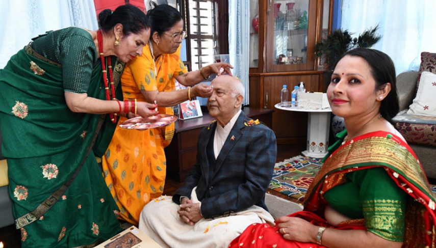 काठमाडौं । नेकपा एमालेका अध्यक्ष केपी शर्मा ओलीले बहिनीहरुको हातबाट भाइटीका लगाए । बिहीबार भाइटीकाको अवसरमा शुभ साइतमा उनले तीन बहिनीहरू विष्णुमाया ढकाल, कौशल्या कोईराला र विष्णुकुमारी पौडेलको हातभाटा भाइटीका लगाएका हुन् । ओलीले बालकोटामा भाइटीकाको शुभसाईत ११ बजेर ३७ मिनेटमा आफ्ना बहिनीहरुबाट भाइटीका ग्रहण गरेका हुन् । त्यस अवसरमा उनले बहिनीहरुले दिएका भाइमसला ग्रहण…
