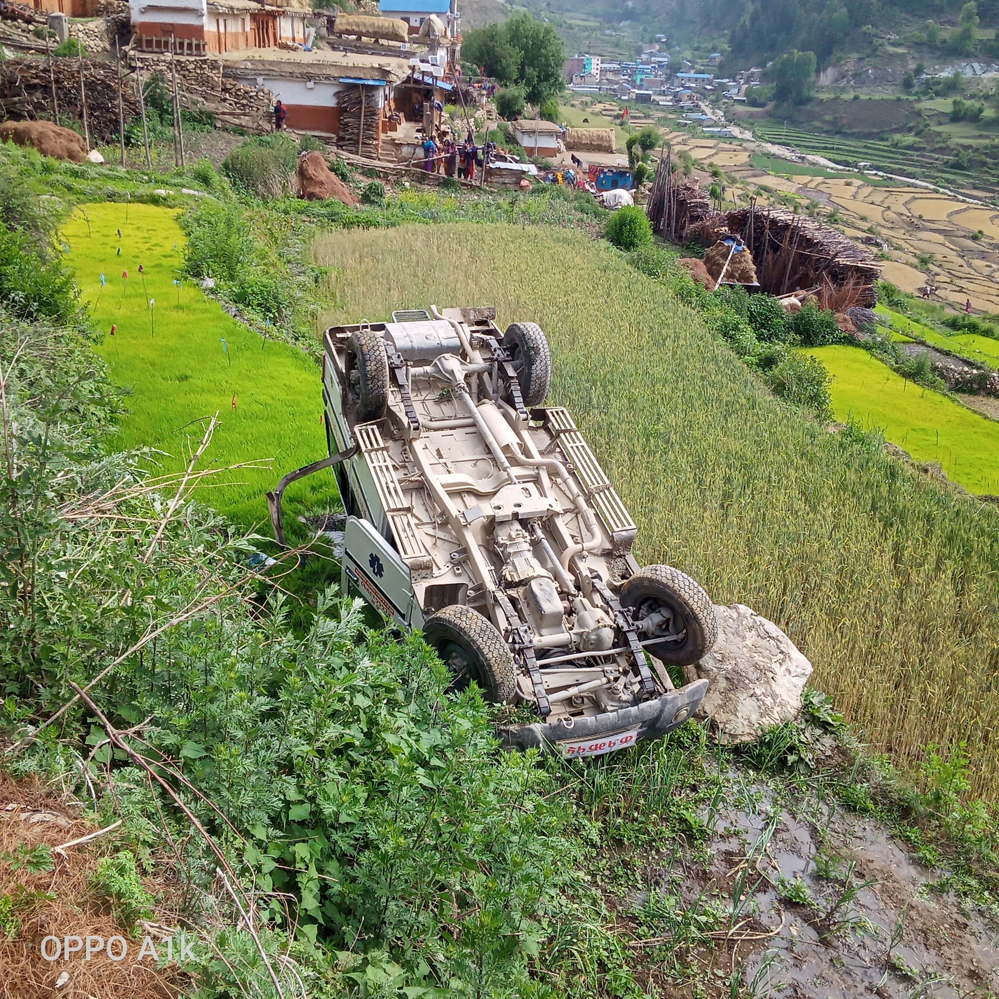जुम्ला । जुम्लामा एम्बुलेन्स दुर्घटना भएको छ । जिल्लाकाे कनकासुन्दरी गाउँपालिकाबाट बिरामी ल्याउदै गरेको एम्बुलेन्स दुर्घटना भएको हो। जिल्ला प्रहरी कार्यालय जुम्लाका अनुसार कनकासुन्दरी गाउँपालिका ६ स्थित दाँते ओखरमा क १ झ १५ नम्बरको कनकासुन्दरी गाउँपालिकाको एम्बुलेन्स आईतबार बिहान दुर्घटना भएको हाे । प्रहरी निरीक्षक तथा सूचना अधिकारी भुवन भट्टका अनुसार दुर्घटनामा तीन जना सामान्य…