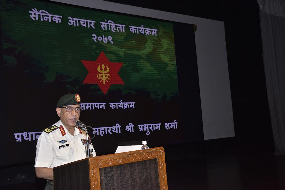 काठमाडौं । प्रधानसेनापति प्रभुराम शर्माले बदलिँदो राजनीतिक वातावरणले राष्ट्रिय सुरक्षामा दीर्घकालीन असर गर्ने बताएका छन् । सैनिक मुख्यालय जंगी अड्डामा आयोजित दुई दिने ‘सैनिक आचार संहिता कार्यक्रम–२०७९’ को समापन समारोहलाई बिहीबार सम्बोधन गर्दै उनले उक्त कुरा बताएका हुन् । सम्बोधनको क्रममा प्रधानसेनापति शर्माले सैनिक मूल्य–मान्यतालाई सदैव केन्द्रमा राख्नु पर्ने धारणा व्यक्त गरेका थिए । बदलिंदो…