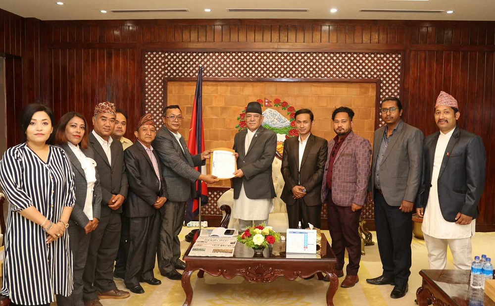 काठमाडौं । राष्ट्रिय फोटो पत्रकार समूह, नेपाल (एनएफपीजे)ले प्रधानमन्त्री पुष्पकमल दाहाल प्रचण्डलाई ज्ञापनपत्र बुझाएको छ । संस्थाका अध्यक्ष प्रदीपराज वन्तको नेतृत्वको टोलीले बुधबार बिहान प्रधानमन्त्रीलाई भेटी ७ बुँदे ज्ञापनपत्र बुझाएको हो । ज्ञापनपत्रमा नेपालमा विभिन्न संचार गृहहरुमा फोटो पत्रकारिता गर्ने फोटो पत्रकारहरुको हक हितका लागि सरकारका तर्फबाट आवश्यक सहयोग प्राप्त होस् र फोटो संग्राहलयका लागि…