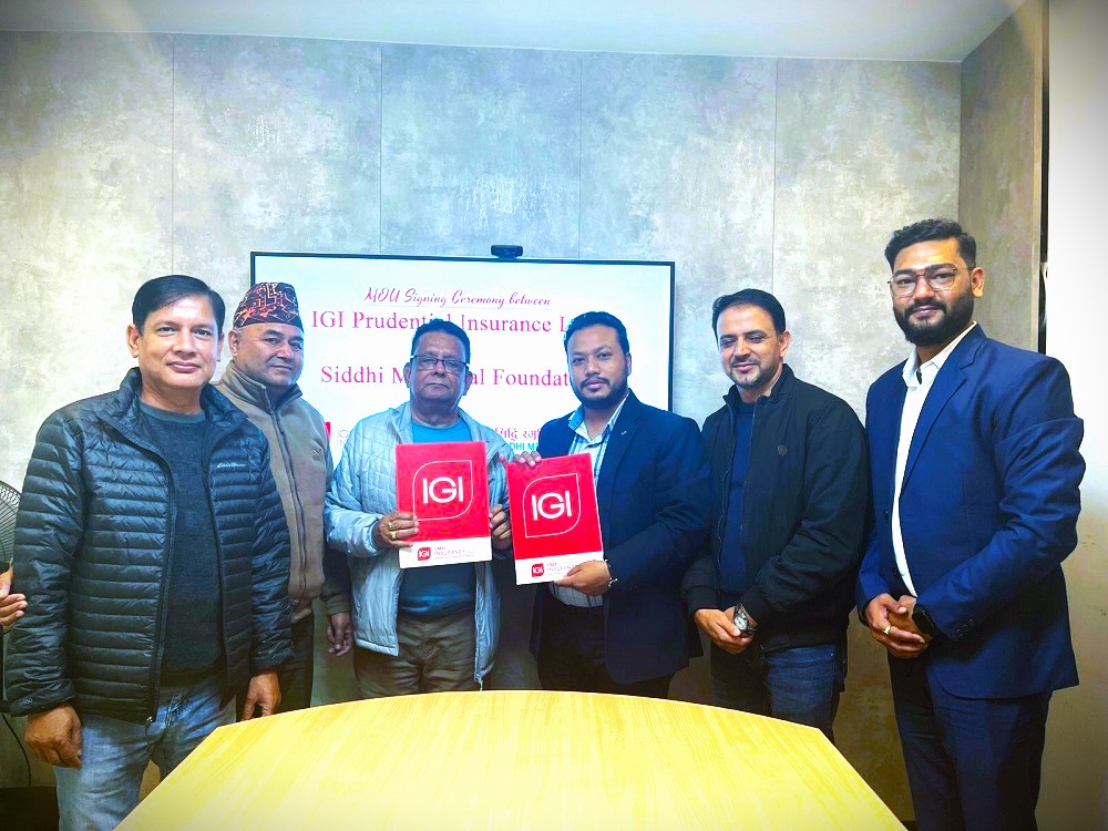 काठमाडौँ । आइजीआई प्रुडेन्सियल इन्स्योरेन्स लिमिटेड र भक्तपुरको भीमसेनस्थानमा रहेको सिद्धि स्मृति प्रतिष्ठान बिच सेवा प्रदान गर्ने सम्झौता भएको छ । उक्त सम्झौतापत्रमा आइजीआई प्रुडेन्सियल इन्स्योरेन्स लिमिटेडका नायव प्रमुख कार्यकारी उज्ज्वल ढुंगाना र सिद्धि स्मृति प्रतिष्ठानका संचालन निर्देशक अनिल राजभण्डारीले हस्ताक्षर गरेका छन् । यस सम्झौता पश्चात आइजीआई प्रुडेन्सियलबाट औषधोपचार बीमा सेवा खरिद गर्ने ग्राहकहरुको…