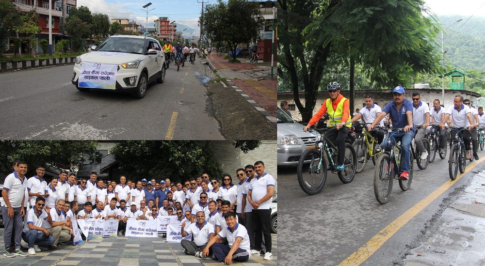 काठमाडौं । नेशनल लाईफ इन्स्योरेन्स कम्पनी लिमिटेडले पोखरामा बीमा सचेतना प्रवद्र्धन प्रयोजनका लागि साईकल र्यालीको आयोजना गरेको छ । बीमा सचेतनाका लागि आयोजना गरिएको साईकल ¥यालीमा कम्पनीका प्रमुख कार्यकारी अधिकृत सुरेश प्रसाद खत्रीसहित नेपाल बीमा प्राधिकरण, गण्डकी प्रदेश का प्रदेश प्रमुख केशव प्रसाद दाहल, प्राधिकरणका अन्य कर्मचारी लगायत कम्पनीका विभागिय प्रमुख, प्रदेश प्रमुख, शाखा प्रमुख…