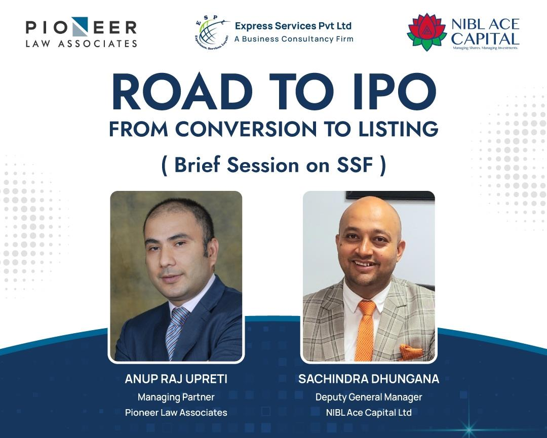 काठमाडाैं । एनआईबिएल एस क्यापिटल लिमिटेड, एक्सप्रेस सर्भिशेश प्राली र पायोनियर ल एसोसिएट्सको सहकार्यमा यहि मे ८, २०२३ सोमबार बिरगञ्ज स्थित क्लार्क रिर्सोटमा 'रोड टु आईपीओ' कार्यशाला सम्पन्न भएको छ । उक्त कार्यक्रममा प्रायोजकको रूपमा रहेको डाएनामिक टेक्नोसफ्ट प्रालीले आफ्नो व्यानर प्रदर्शनी गरेको थियो । एनआईबिएल एस क्यापिटल लिमिटेड, एक्सप्रेस सर्भिशेश प्रा ली र पायोनियर ल…