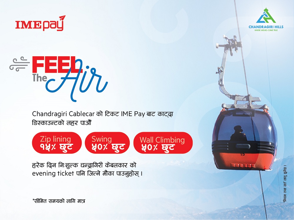 आइएमई पेबाट टिकट काट्दा चन्द्रागिरिको जिप लाइनिङ तथा स्विङ्समा ५०% सम्म छुट