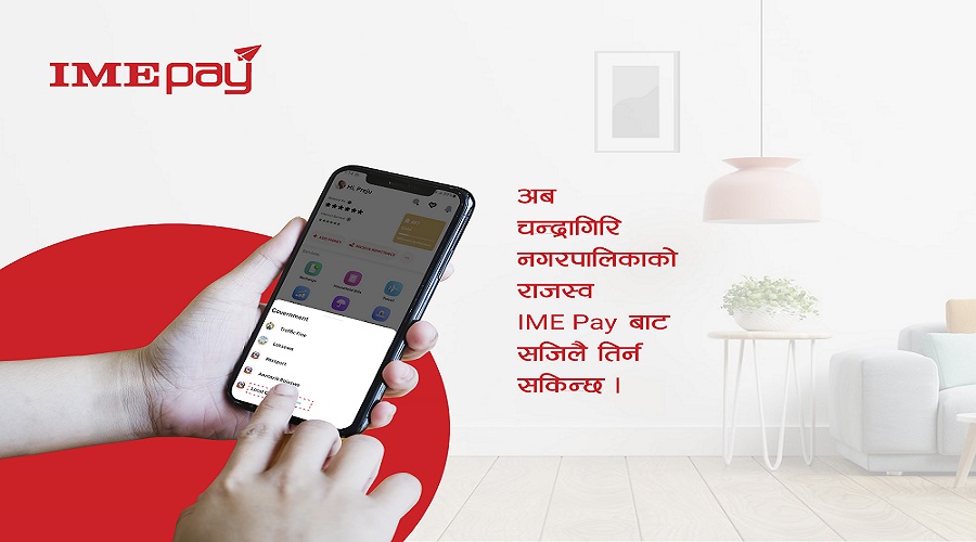 काठमाडौँ । चन्द्रागिरि नगरपालिकामा आइएमई पेको विद्युतीय कर भुक्तानी सेवा शुरु भएको छ । चन्द्रागिरि नगरपालिकाका नगर प्रमुख घनश्याम गिरीले आइतबार आइएमई पे एप प्रयोग गरी विद्युतीय कर भुक्तानी सेवाको उद्घाटन गरेका छन् । यस सेवा मार्फत चन्द्रागिरि नगरबासीहरुले घर–बहाल कर, सम्पत्ति कर तथा व्यवसायिक कर सजिलै अनलाईनमा आइएमई पे मार्फत तिर्न सक्नेछन् । उद्घाटन…