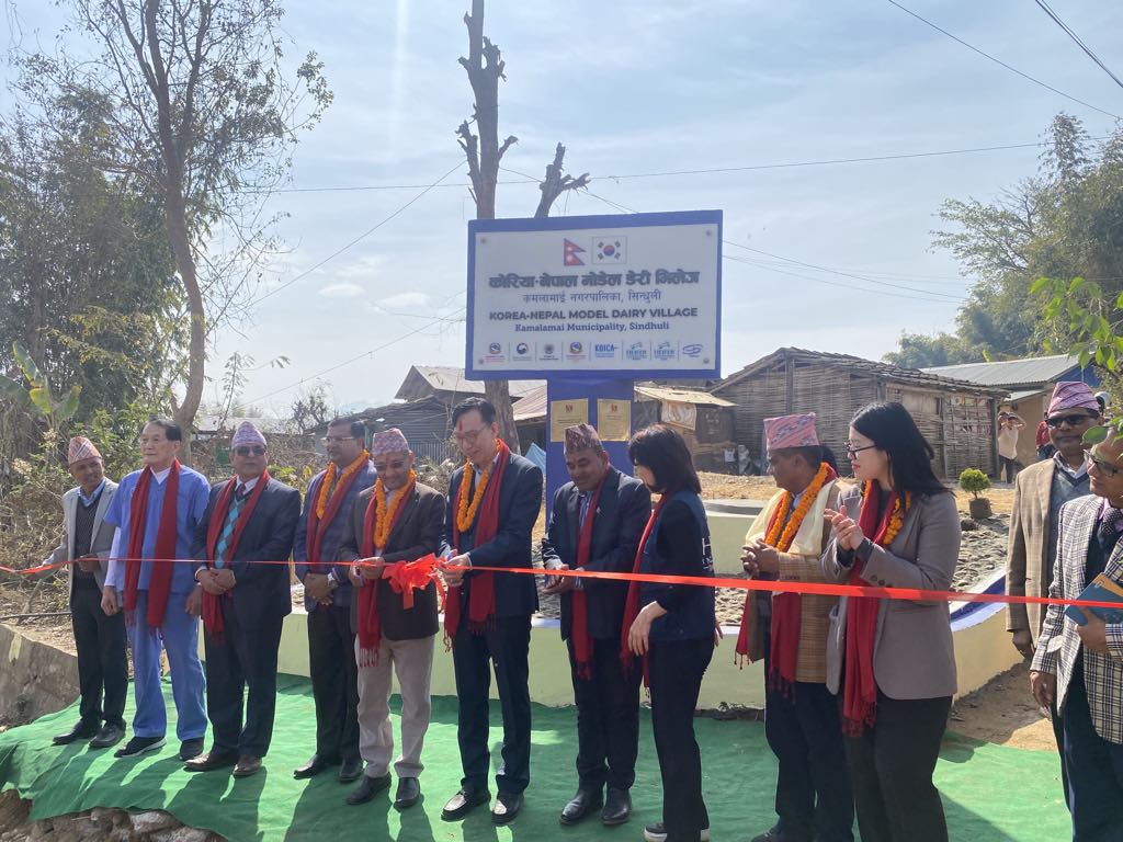 सिन्धुली । सिन्धुलीको कमलामाई नगरपालिका–५ मा कोरिया–नेपाल मोडेल डेरी भिलेजको उद्घाटन गरिएको छ । नेपालस्थित गणतन्त्र कोरियाका राजदूत पार्क तेइ योङ, कृषि तथा पशुपक्षी विकास मन्त्रालयका सचिव डा रेवतीरमण पौडेल र कमलामाई नगरपालिकाका प्रमुख उपेन्द्रकुमार पोखरेलले संयुक्तरुपमा उक्त भिलेजको आज उद्घाटन गरेका हुन् । भिलेज उद्घाटनको अवसरमा किसानलाई नेपालमा पहिलोपटक जन्मिएको होलिस्टाइन जातको बाच्छी हस्तान्तरण…