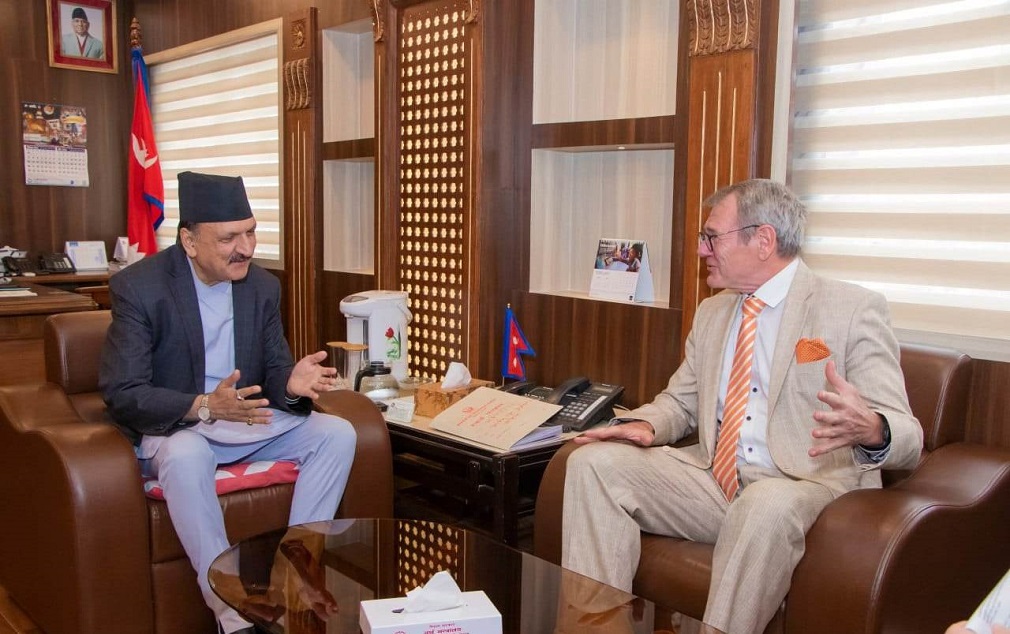 काठमाडौं । अर्थमन्त्री डा. प्रकाश शरण महतसंग जर्मनीका राजदूत डा. थोमस प्रिन्जले भेटवार्ता गरेका छन् । भेटमा राजदूत प्रिन्जले नेपालमा स्वच्छ उर्जा र प्रसारण लाइन बनाउन त्यस क्षेत्रमा सहयोग गर्ने बताए । साथै उनले नेपालमा औषधीजन्य उद्योगमा लगानी गर्न रुची रहेको समेत जानकारी गराए । अर्थ मन्त्री डा. महतले नेपालमा धेरै लगानी भित्राउने वातावरण बनाउने…