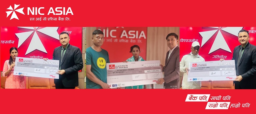 काठमाडौं । एन आई सी एशिया बैंकले सर्वश्रेष्ठ बचत खाता योजना अन्तर्गत बैंकका विभिन्न शाखामा बचत खाता खोल्नु भएका ३ जना ग्राहक महानुभावहरुको दुर्घटनामा परि मृत्यु भएकाले ग्राहकलाई उपलब्ध गराइएको बीमा लाभ अन्तर्गत मृतक खातावालका परिवारलाई बीमा वापत प्रतिव्यक्ति रू. १० लाखको दरले कुल रू. ३० लाख बीमा रकम भुक्तानी गरेको छ । बीमा लाभ…