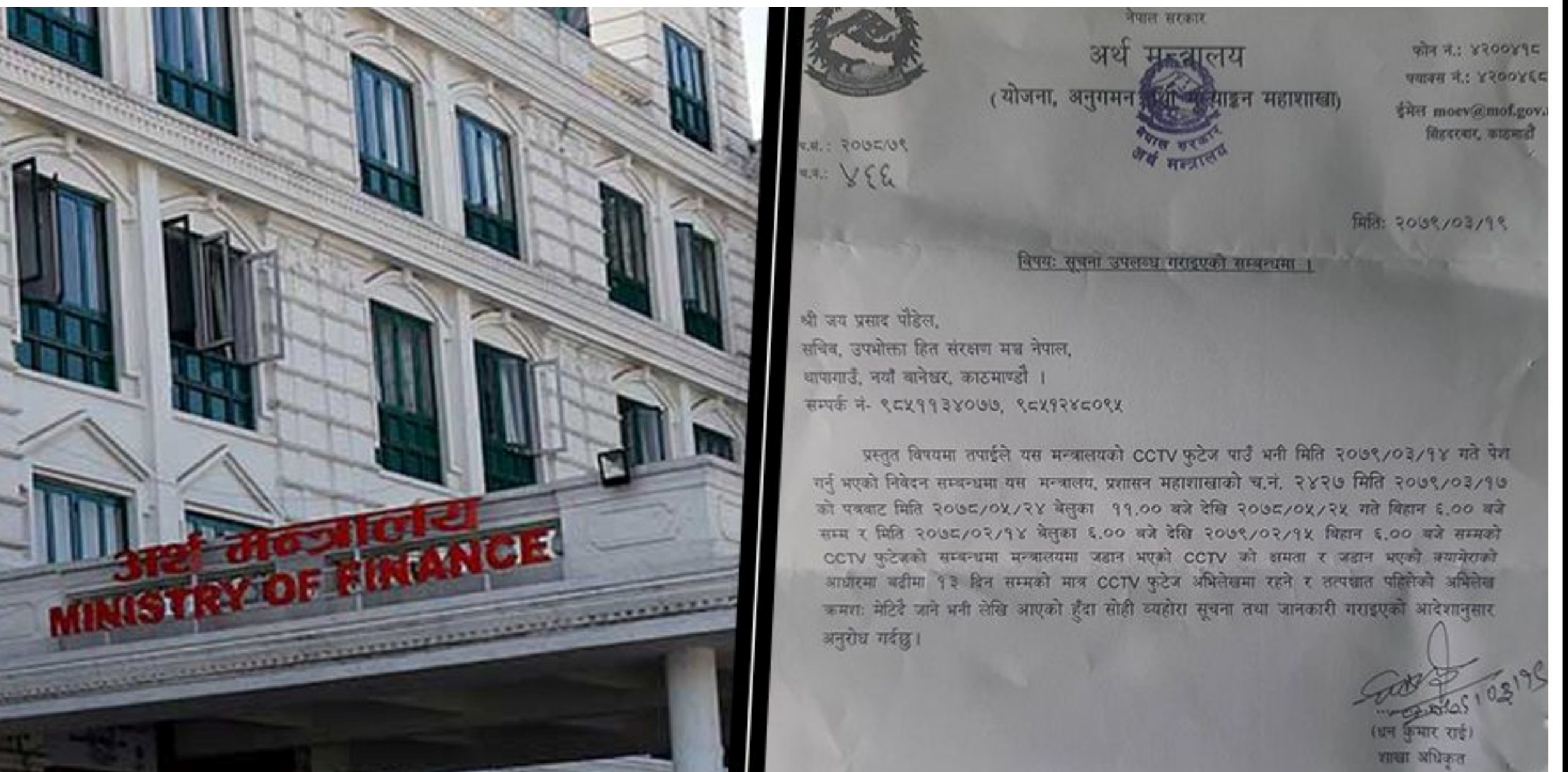 काठमाडौं । अर्थ मन्त्रालयले आर्थिक वर्ष २०७९/८० को बजेट भाषणको अघिल्लो दिनको सीसीटीभी फुटेज लुकाएको छ । उपभोक्ता हित संरक्षण मञ्च नेपालका सचिव जय प्रसाद पौडेलले सूचनाको हक अन्तर्गत उक्त दिनको अर्थ मन्त्रालयको सीसीटीभी फुटेज माग्दा मन्त्रालयले लुकाएको हो । अर्थमन्त्री जनार्दन शर्माले गत जेठ १५ गते प्रतिनिधि सभामा आर्थिक वर्ष २०७९/८० को बजेट पेश गरेका…