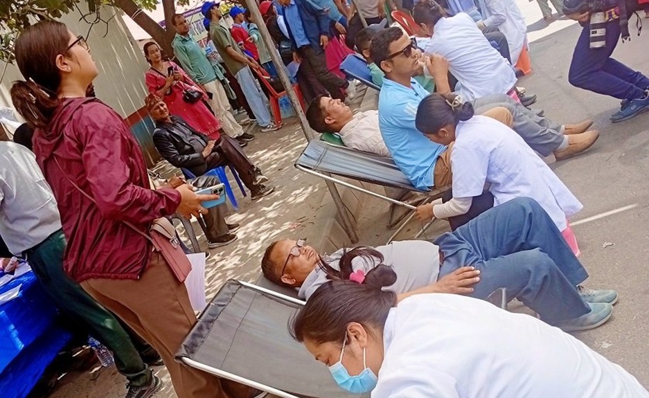 आन्दोलनकाे २३ औं दिनमा शिक्षकहरूले गरेर सडकमै रक्तदान