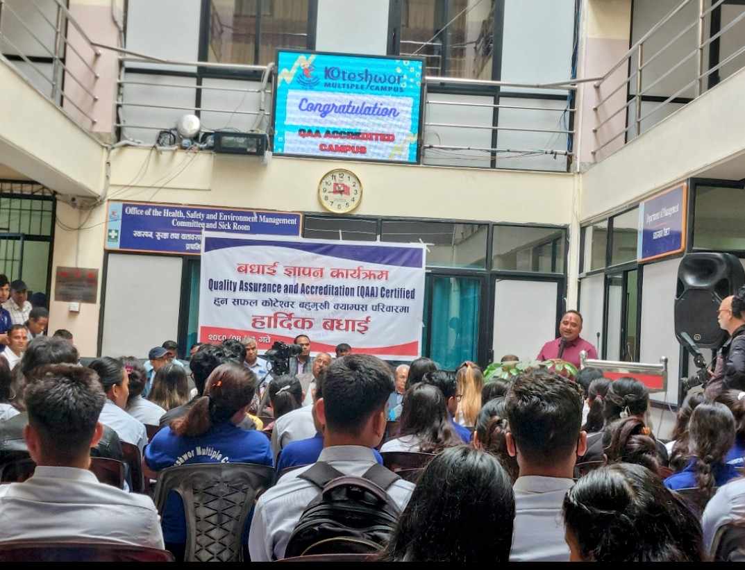 काठमाडौं । कोटेश्वर बहुमुखी क्याम्पसले विश्व विद्यालय अनुदान आयोगले प्रदान गर्ने गुणस्तर सुनिश्चितता तथा प्रत्यायन (क्यूएए) प्रमाणिकरण प्राप्त गरेको छ । विश्व विद्यालय अनुदान आयोगको गत हप्ता बसेको बोर्ड बैठकले देश भरिका कलेजहरुमध्ये कोटेश्वर बहुमुखी क्याम्पस सहित दुई वटा कलेजलाई क्यूएए प्रमाणिकरण गर्ने निर्णय गरेको थियो । पढाईको गुणस्तर राम्रो भएका, विद्यार्थीसंख्या उल्लेख्य भएका, भौतिक…