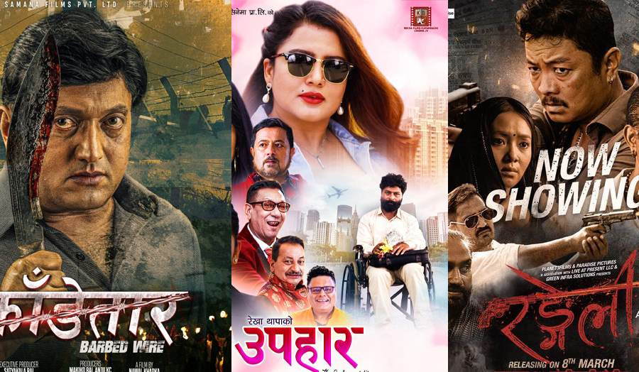 काठमाडौं । आजदेखि तीन नेपाली चलचित्र ‘उपहार’, ‘काँडेतार’ र ‘रङ्गेली’ को सार्वजनिक प्रदर्शन गरिएको छ । महाशिवरात्रिलाई लक्षित गर्दै प्रदर्शनमा आएका तीनै चलचित्रको विधा भने फरक छ । सोही कारण पनि दर्शकले रोजाइअनुसारको चलचित्र हेर्न पाउने विश्वास निर्माण पक्षको छ । रेखा थापाले निर्माणसँगै अभिनय गर्नुभएको चलचित्र ‘उपहार’ मा काठमाडौंमा जीविकोपार्जनका लागि तीन महिलाले गर्ने…