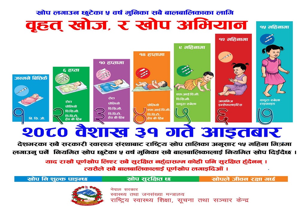 आज बृहत खोप अभियान, देशैभरी खोप लगाईदै