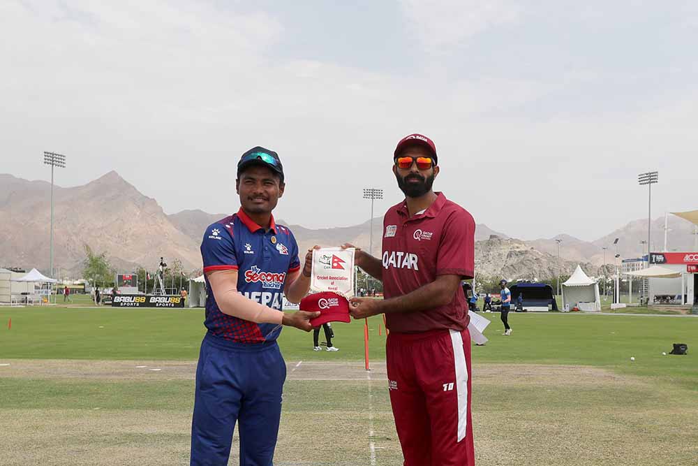 काठमाडौँ । एसीसी प्रिमियर कप अन्तर्गत आज कतारले नेपालको सामना गर्दैछ । नेपालले टस जितेर पहिला ब्याटिङ गर्ने भएको छ । नेपालका कप्तान रोहित पौडेलले टस जितेर पहिला ब्याटिंग गर्ने निर्णय गरेका हुन् । योसँगै कतारले पहिला बलिङ गर्ने भएको छ । नेपालले एसीसी प्रिमियर कपमा पहिलो खेलमा मलेसियालाई पराजित गरेर विजयी शुरुवात गरेको छ…