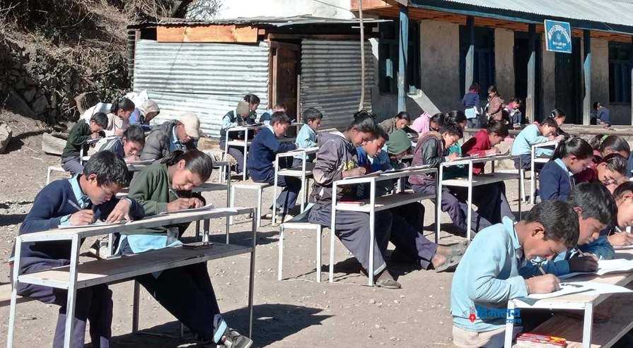 सिमकोट (हुम्ला) । उच्च हिमाली जिल्ला हुम्लामा चिसो बढ्दै गएपछि विद्यार्थीले घाममा बसेर वार्षिक परीक्षा दिन थालेका छन् । हुम्लामा विगतका वर्षझैँ हिमपात नभए पनि चिसो बढ्दा खुल्ला चौरमा डेस्क, बेन्च राखेर विद्यार्थी यो वर्षको वार्षिक तथा अन्तिम परीक्षा दिइरहेका छन् । चिसोले सबैभन्दा बढी विद्यार्थीलाई समस्या बनाएको छ । चिसो बढेपछि यहाँका विद्यालयले खुला…