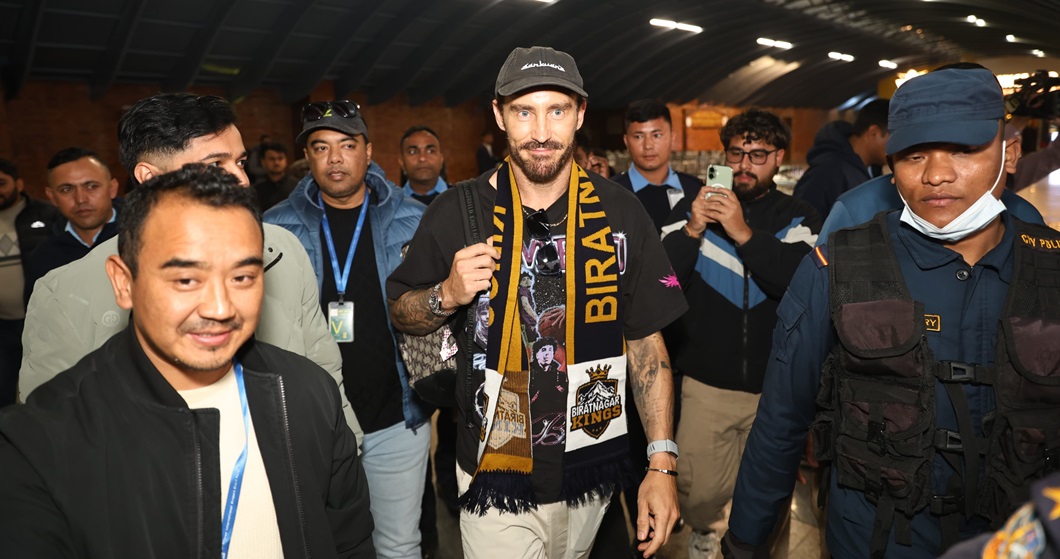 काठमाडौं । दक्षिण अफ्रिकाका दिग्गज क्रिकेटर फाफ डु प्लेसिस विराटनगर किङ्ग्सबाट नेपाल प्रिमियर लिग (एनपीएल) क्रिकेट खेल्न काठमाण्डौ आइपुगेका छन् । ४१ वर्षीय डु प्लेसिस केहीबेरअघि त्रिभुवन अन्तर्राष्ट्रिय विमानस्थलमा ओर्लिएका हुन् । उनलाई विमानस्थलमा विराटनगर किङ्ग्सका प्रतिनिधिले स्वाग गरे । डु प्लेसिसले अब विराटनगरका बाँकी खेलहरू खेल्नेछन् । एनपीएलमा भोलि दुई वटा खेल हुँदैछन् ।…