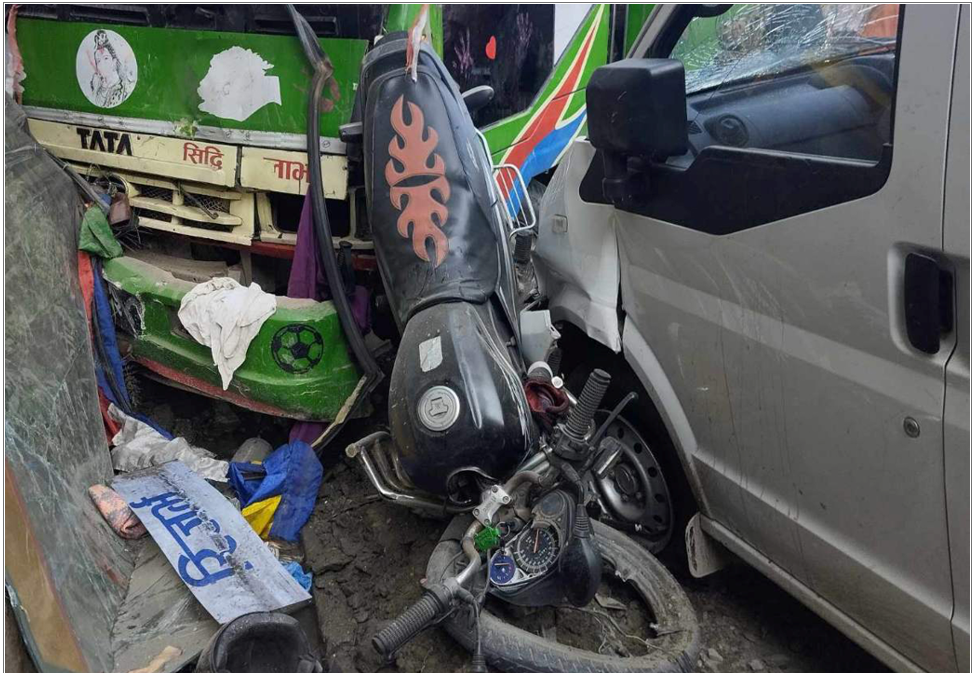 मलेखु । धादिङमा आज मात्रै अलग अलग चार स्थानमा सवारी दुर्घटना हुँदा १८ जना घाइते भएका छन् । पृथ्वी राजमार्गअन्तर्गत गल्छी गाउँपालिका–४ चिरौदी पुल नजिक तीन सवारी साधन एकापसमा ठोक्किएर भएको दुर्घटना हुँदा १२ जना घाइते भएका छन् । जिल्ला प्रहरी कार्यालय धादिङका प्रहरी नायब उपरीक्षक सन्तुलालप्रसाद जैसवारका अनुसार धादिङबाट काठमाडाैं तर्फ जाँदै गरेको बा३ख…