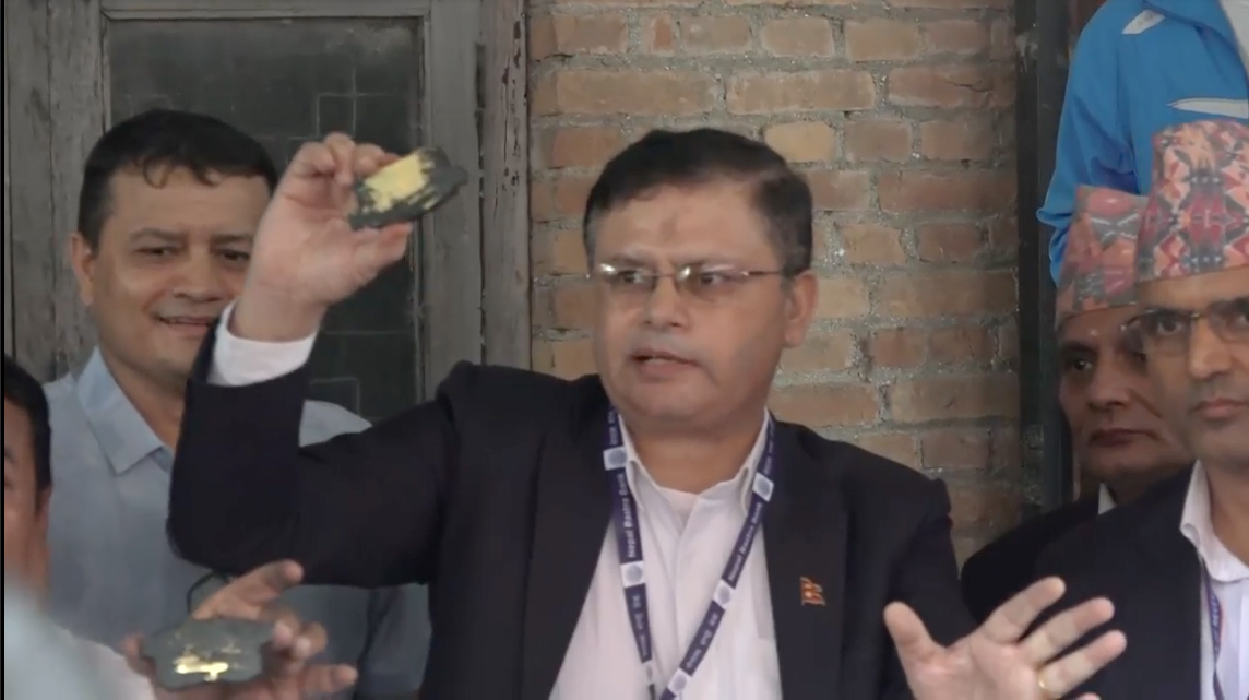 काठमाडौं । नेपाल राष्ट्र बैंकको टक्सार महाशाखाले विमानस्थल भन्सार क्षेत्रबाट बरामद सय किलो सुन गाल्ने प्रक्रिया सुरु गरेको छ । सोमबार सञ्चारकर्मीको उपस्थितीमा टक्सार महाशाखले ब्रेक सुबाट सुन निकाल्दै गाल्ने प्रक्रिया सुरु गरेको हो । ब्रेकसु कै आकारमा रहेको सुनको बाहिरपट्टी कालो रंग लगाइएको पाइएको छ । टक्सारका कर्मचारीले कालो रंग खुर्किदा सुन देखिएको थियो…